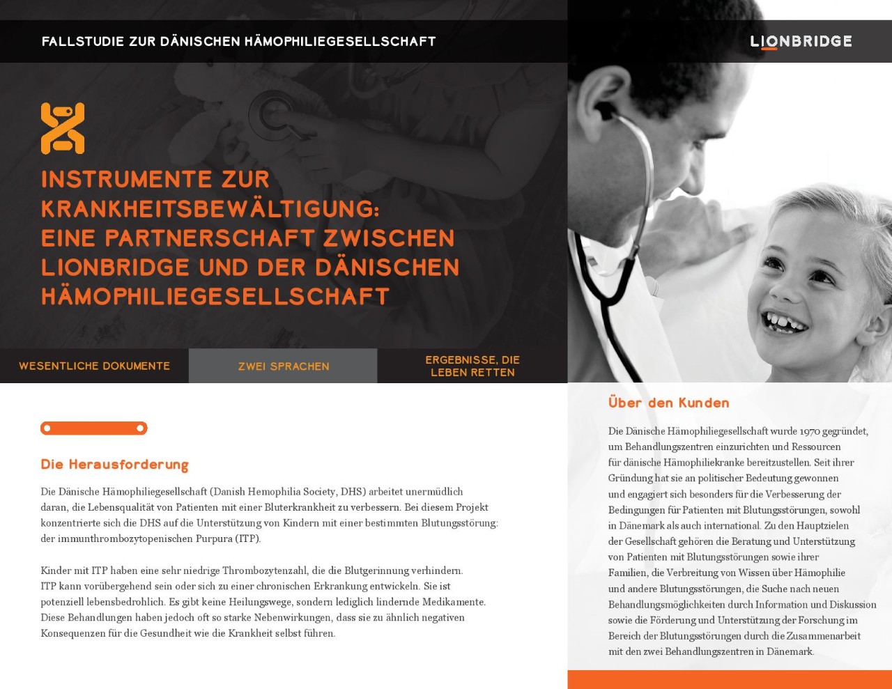 Die Dänische Hämophiliegesellschaft (DHS) bietet Hämophilie-Patienten und ihren Familien Beratung und Aufklärung, um sie bei der Behandlung, neuen Forschungsergebnissen und im täglichen Leben zu unterstützen. Im Rahmen einer Initiative zur Unterstützung von Patienten mit immunthrombozytopenischer Purpura (ITP) hat die DHS ein Dialog-Tool entwickelt, das die effektive Kommunikation zwischen den Familien der Patienten und den Anbietern im Gesundheitswesen erleichtert.