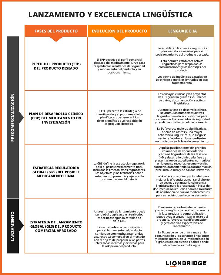En esta serie de blogs, analizamos las fases del ciclo de vida de un medicamento, centrándonos en el contenido y el lenguaje. También ofrecemos consejos para aplicar modelos lingüísticos de gran tamaño (LLM) a las traducciones de productos regulados de forma segura y eficaz. La primera entrada del blog se ocupó de la etapa previa a la comercialización. Siga leyendo para obtener más información sobre la etapa de lanzamiento de un nuevo medicamento.