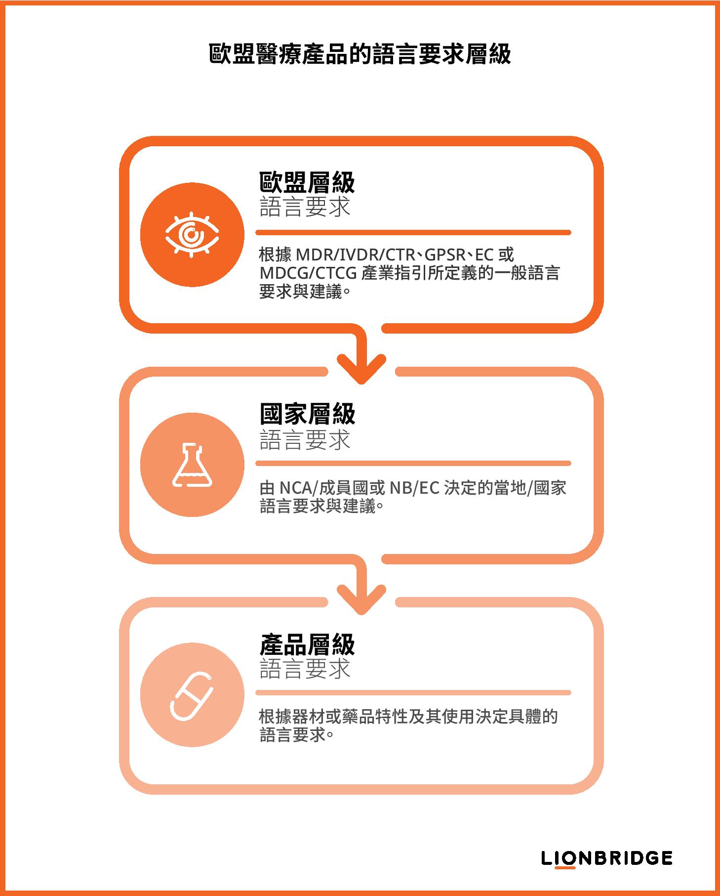 根據歐盟醫療器材法規和臨床試驗規範,為了確保遵循生命科學相關法規,製造商或臨床試驗委託者必須妥善考量以下這三個語言要求層級: